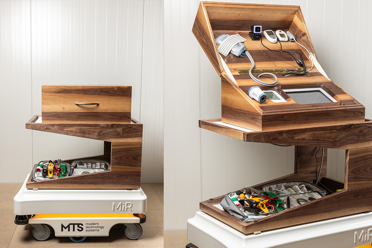 Autonómna jednotka je vybavená pokročilou navigáciou pre bezpečný pohyb v interiéri a súčasne integruje aplikáciu na prepojenie s lekárom či zdravotníckym centrom, čo umožňuje vzdialenú diagnostiku, monitoring a poskytovanie podporných služieb priamo odborníkmi.