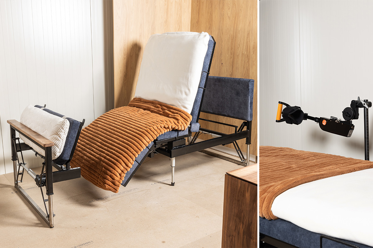 Posteľ s možnosťou automatického otáčania a polohovania je vybavená senzorickým systémom na monitorovanie vitálnych funkcií. Integrovaný robotický rehabilitačný modul umožňuje vykonávanie cvičebných programov, ktoré sa prispôsobujú individuálnym potrebám používateľa. Zariadenie zároveň poskytuje asistenciu pri vstávaní, čím zvyšuje samostatnosť a komfort každodenného života.