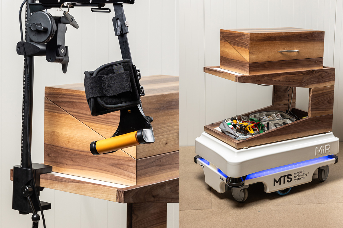 Interiérový ekosystém Healtronix je koncipovaný ako plne prepojené prostredie, v ktorom asistívne robotické prvky a inteligentný nábytok fungujú v jednotnom digitálnom dvojčaťi. Súčasťou riešenia je aj integrácia exoskeletových technológií, ktoré sú zakomponované nielen do virtuálneho modelu, ale aj do praktického používania. Vďaka tomu je možné kombinovať rehabilitačné prvky s každodennou asistenciou, čím systém poskytuje maximálny komfort a podporu mobility pre používateľov v domácnostiach či zariadeniach sociálnej starostlivosti.